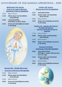Every year, hundreds of thousands of pilgrims come, alone or in group, especially during the Triduum of the sick, to confide to Our Lady their poverty, their sufferings, their pains, their wants. They come to confide themselves to the Mother of the Saviour, and to express their trust and hope in Jesus Christ who is the source of all graces.