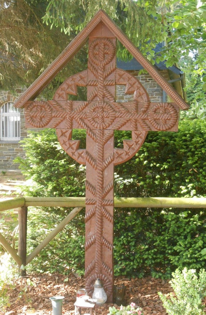 Ce sont des jeunes de La Calamine qui ont porté et érigé cette croix derrière le cloître de saint Grignion de Montfort, en 1956, lors de la révolution hongroise. Elle commémore les Hongrois tombés pour la liberté, à Budapest, cette même année. Elle porte l’inscription « Hongrie en sang » dans les couleurs nationales de ce pays (vert et rouge).