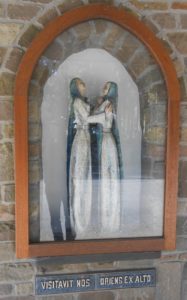 Marie visite sa cousine Elisabeth. Enlacées dans un même geste d’allégresse, elles glorifient Dieu, tandis que jaillit spontanément le Magnificat.