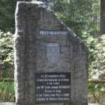 La stèle, à l’origine ornée d’une étoile lumineuse, commémore le passage de la Vierge des Pauvres entre les sapins.