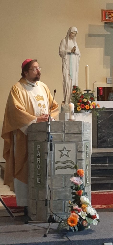 Crise du coronavirus oblige, nous devons restés confinés ! Pourtant je sais que vous êtes là spirituellement présents et même virtuellement présents à travers les médias, comme YouTube, qui nous unissent. Nous sommes là au pied de Marie qui nous a visités autrefois à Banneux et qui continue à nous visiter aujourd’hui. Elle continue à soulager les souffrances et à assister les malades. Plus que jamais elle est la Vierge des Pauvres, car dans la pauvreté que nous vivons, la pauvreté psychologique, la pauvreté matérielle, la pauvreté en relations, la pauvreté spirituelle, Marie nous assiste et nous conduit vers Jésus, elle qui a vécu la pauvreté et l’exil : rappelons-nous qu’il n’y avait pas de place pour elle à l’hôtellerie que elle dut accoucher. C’est dans cette précarité qu’elle a accouché du sauveur du monde. C’est dans cette pauvreté qu’elle nous a offert la joie de Noël. Vivons à notre tour cette joie de l’accouchement d’un monde nouveau, qui est né de la naissance et de la résurrection de Jésus! La solidarité de Marie avec Jésus et Joseph nous guide dans notre solidarité actuelle, pour avancer vers un monde meilleur et pour nous faire entrer dans la joie de Dieu.