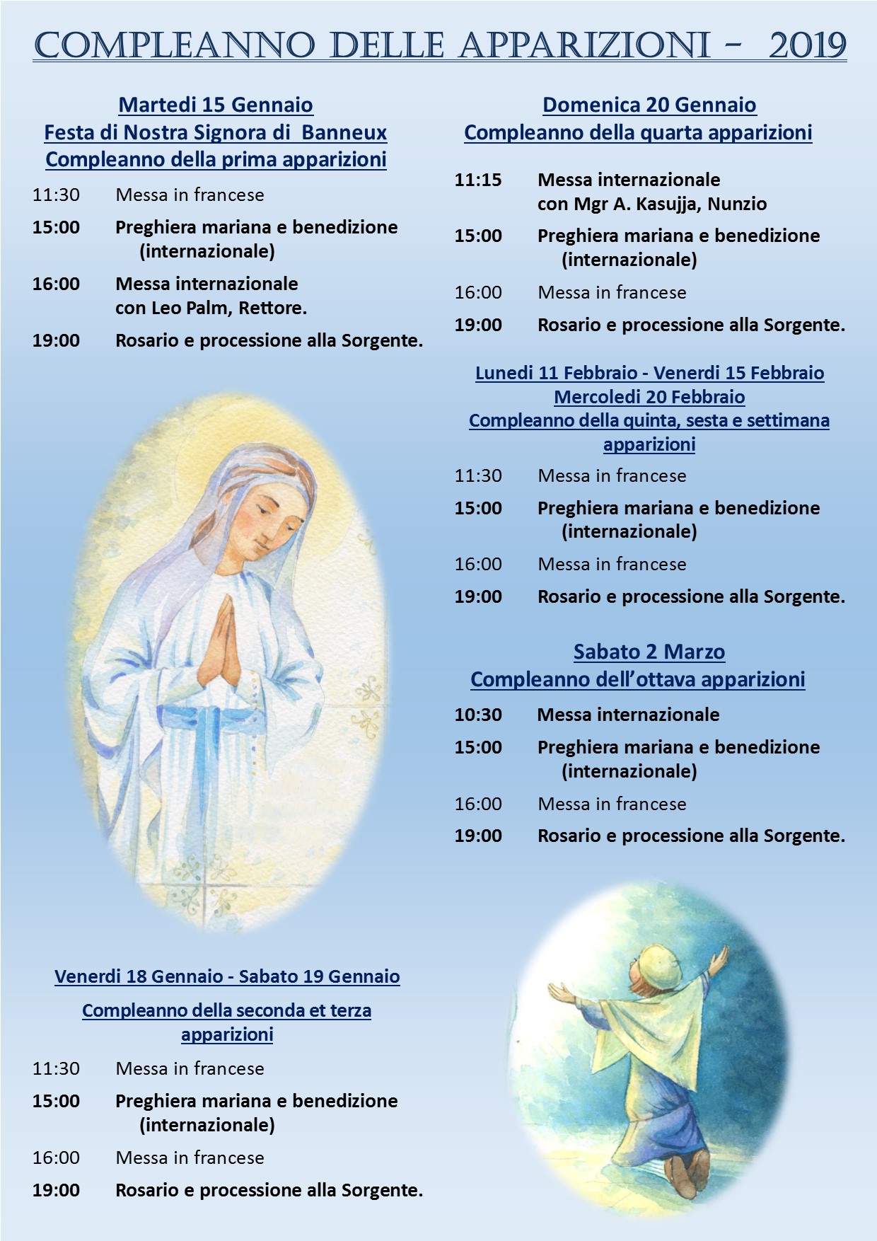 Compleanno delle Apparizioni 2019 Partagez ! Share this!Fai clic qui per stampare (Si apre in una nuova finestra)Fai clic qui per inviare l'articolo via mail ad un amico (Si apre in una nuova finestra)Fai clic per condividere su Facebook (Si apre Continua a leggere→ Continua a leggere... A la Une, Grandi feste liturgiche Lascia un commento