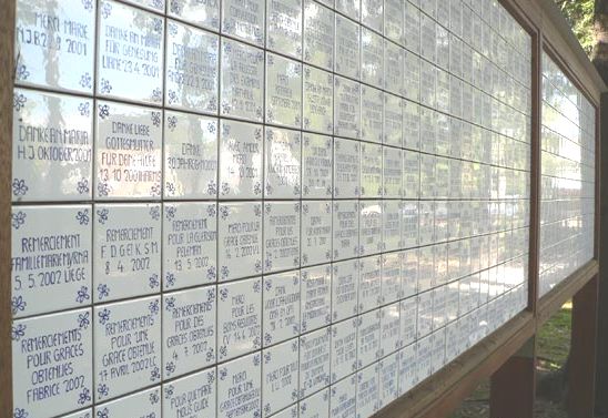 L’ex-voto è una modalità popolare, tramandata nei tempi, per manifestare riconoscenza a seguito di una grazia ottenuta. A Banneux, la gratitudine rivolta alla Vergine dei Poveri, può essere espressa attraverso l’affissione di formelle di ceramica sulle quali vengono esternate parole di ringraziamento che testimoniano speranza e fede.